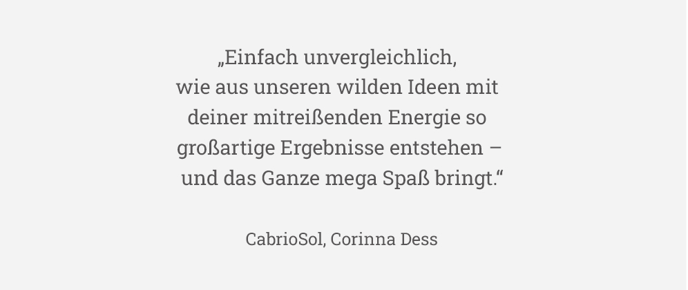 Viele meiner Kund:innen arbeiten seit Jahren mit mir zusammen. Weil sie spüren, dass ich mitdenke und voller Begeisterung dabei bleibe.