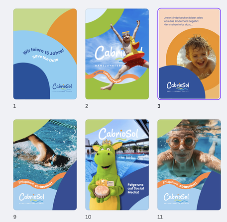 Parallel zur Kampagne entstanden neue Social-Media-Vorlagen für Reels, Posts und Storys. Ab Herbst setze ich monatlich emotionale Videoclips um, die das CabrioSol erlebbar machen und die Themen Wellness, Spaß und Familienzeit visuell verbinden.