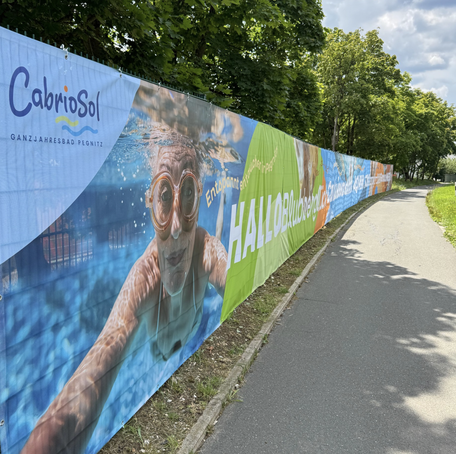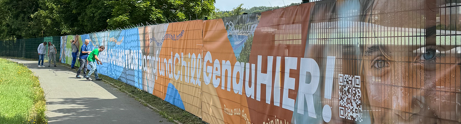 Herzstück des neuen Auftritts ist das „MEGAVERSUM“ – eine modulare Bauzaun-Kampagne über die gesamte Länge des Bads. Plakative Wortschöpfungen